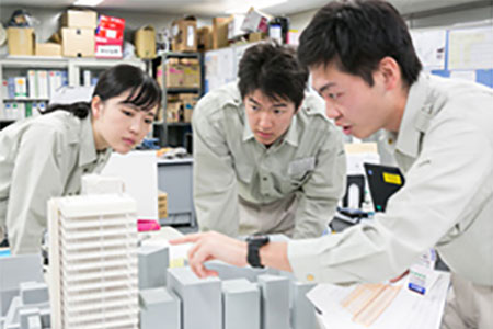建設業の仕事の流れを体感できるグループワーク、スポーツベット 2ch管理の仕事や安全管理に関する講義を通し、基本的な職務理解をしてもらいました。また、本社社屋や技術研究所を見学し、最新技術に触れてもらいました。