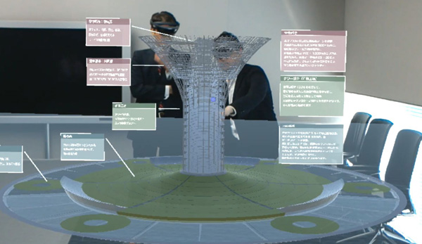 当社ブースでは、スポーツベット喜ぶにやさしい未来都市をMR(Mixed Reality:複合現実)で体験できます。特殊なメガネ(対象:中学2年生以上)を装着して巨大構造物を出現させたり、タブレット端末(対象:小学生~中学1年生)を使ってクイズに挑戦したり…。