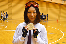 浦田選手は、教師を目指していた20歳の時に急激に視力が低下し、網膜色素変性症と判明。現在、左目の視力はなく、右目も5円玉程の明かりが少し見える程度。とにかくくやしかったと、発症当時の気持ちを語りました。