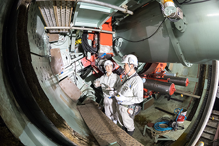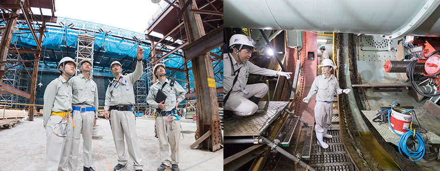 (10)土木の作業所では、組み立て中のシールドマシンの中に入り、説明を受けました。