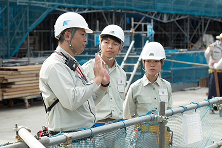 (4)教育担当の社員と一緒に作業所を巡回し、工程どおりに作業が進んでいるか、危険な箇所はないかをチェックします。