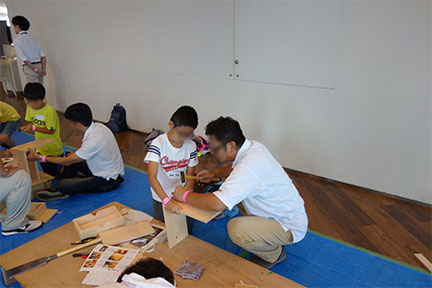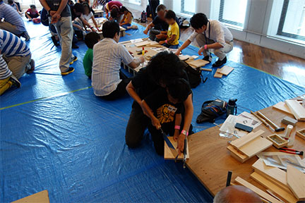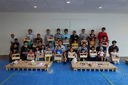 参加者は、図面と材料を見比べながら、協力しながら制作を進めていきました。作品が出来上がると、どの家族も笑顔にあふれていたのが印象的です。親子のコミュニケーションを深めることができ、夏休みの良い思い出となったのではないでしょうか。