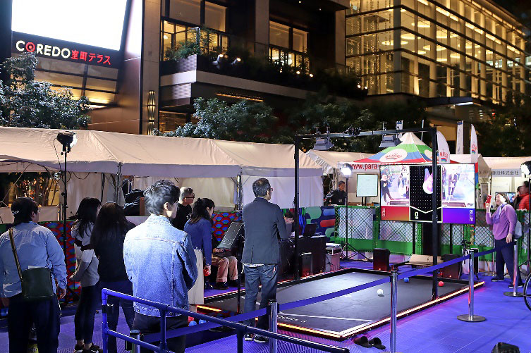 スポーツベットブースでは、当社が開発協賛をした新型のデジタル競技システム「CYBER BOCCIA S」(サイバーボッチャ・エス)で、ボッチャの競技体験ができます。ボール同士の距離の計測や投球順、勝敗の判定などがモニターに映し出されるため、ルールのわからない方でもボッチャを楽しむことができます。