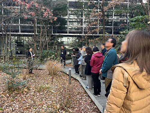 本セミナーは、ヤマネ・いきもの研究所が公益信託経団連自然保護基金の助成を受け、経団連自然保護協議会の協力を得ながら、2021年から継続的に展開している企業人向けの生物多様性教育活動です。 今回は当社の技術研究所(東京都江東区)を会場に開催。「建設会社のネイチャーポジティブを目指す取り組みから企業価値向上を学ぶ」をテーマとして、ネイチャーポジティブ実現に向けた展開の考え方や姿勢を学び、また、生物多様性を構成する生物のおもしろさを体感することなどを目的としました。 ネイチャーポジティブの達成や持続可能なビジネスと自然共生サイトに関心のある企業から14名が参加し、都市型ビオトープ「再生の杜」や、レインガーデン(雨水を一時的に貯留し、地下へ浸透させる庭)の実証実験施設などを視察していただきました。また、当社社員が、スポーツベットのネイチャーポジティブへ向けた取り組みや、再生の杜の概要とそのモニタリングや活用事例など、当社の生物多様性に関する取り組みについて紹介しました。 このほか、ヤマネ・いきもの研究所による再生の杜にある植物の葉を活用した生物多様性の体感学習や、ワンアソシエイツによるネイチャーポジティブの取り組みを通じた企業価値の向上について考えるワークショップなど、知識の習得にとどまらない、生物多様性についての自分事化をめざす有意義なセミナーとなりました。 スポーツベットでは、今後も自社の事業活動のほか、他の団体や企業と連携することで、ネイチャーポジティブの実現に向け活動して参ります。