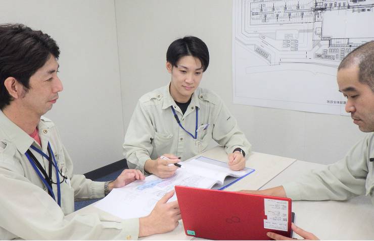 14:30-社内打ち合わせ他工区の工事進捗状況や、今後に向けた技術開発について共有。