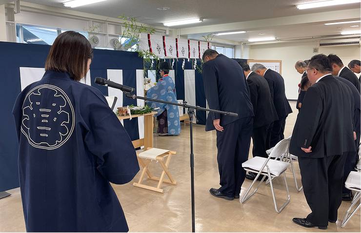 8:25-朝礼毎朝始業前、支店内勤務者にて各現場の無事故無災害を願い安全参拝。