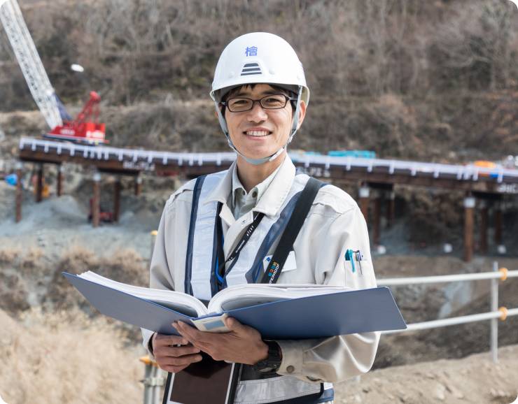 私は本州と四国を結ぶ明石海峡大橋を身近に見て育ち、「自分もいつかはこんな大きな建造物の工事に携わりたい」と憧れを抱き、土木の世界を目指すようになりました。大学卒業後は、中堅ゼネコンに就職。土木工事の施工管理として、それなりの仕事を任されるようになりましたが、徐々に会社の業績が悪化。漠然とした不安を持つようになり転職を決意しました。夢である大規模プロジェクトに携わるなら大手ゼネコンに。その中でも技術開発や研究に力を入れているシミズで技術者として勉強をし、自分を大きく成長させたいと思い応募しました。シミズは大手という立場に満足することなく、常にチャレンジを続けており自分の想いと重なりました。