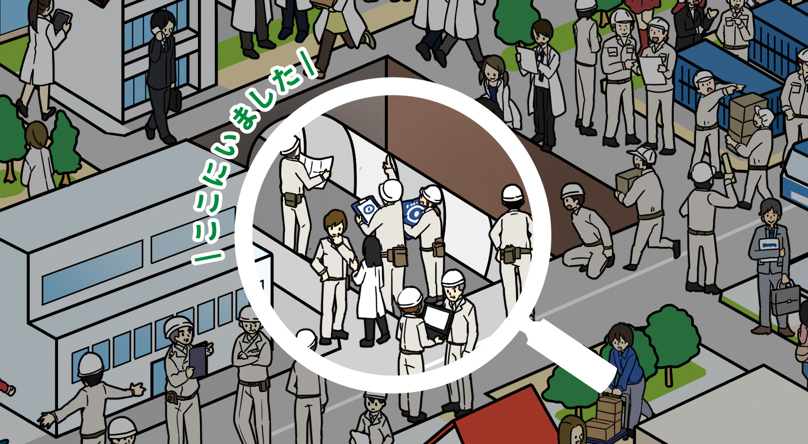 2つの円がつながった形のトンネルを、連結した2台のシールドマシンで一度に掘る工法です。立会(たちあい)川で行われている雨水放水路をつくる工事では、地中に埋められた上下水道や電力ケーブルなどの管を避けながら、限られた空間でトンネルをつくるため、横に2台並んだ状態から縦に並んだ状態へ回転(スパイラル)する世界初のシールドマシンが採用されました。
