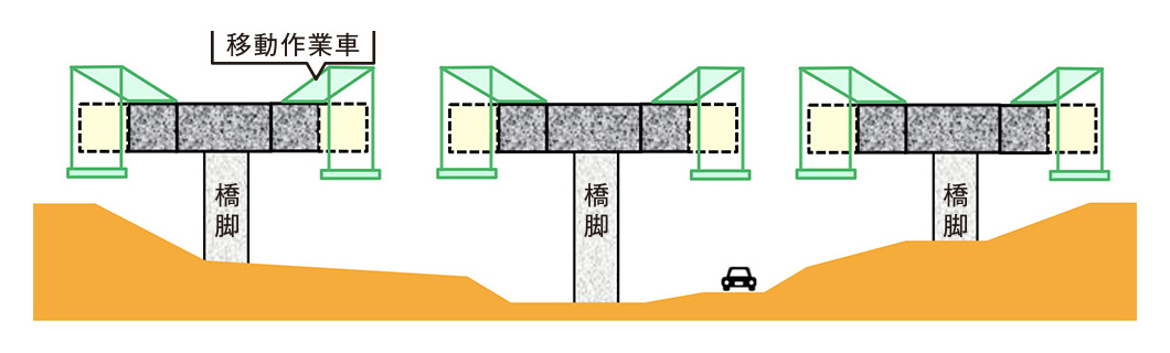 張り出し架設工法のしくみ