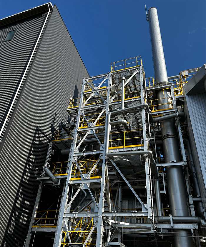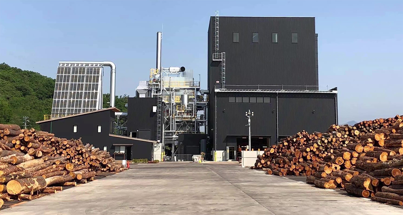 木質バイオマス発電施設、チップ工場の全景