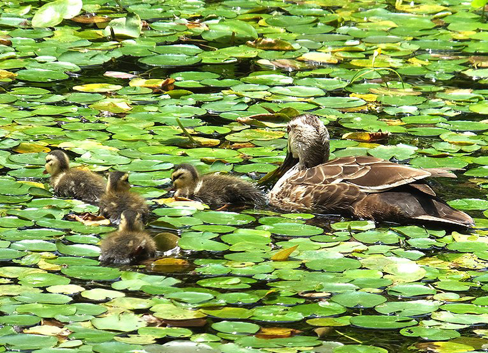 施設や建物が環境に悪い影響を与えないようにするための技術を研究しています。研究所のビオトープに来た、カルガモの親子を観察していることもあります。