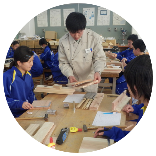 東京木工場では、木工教室を開催したり、学校で木工技術を教えたりという活動を行ってきました。また、セミナーの1つとして木工場見学会も行っています。くわしくは、ホームページを見てください。