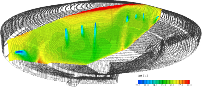 Analyze スポーツベット 5チャンネル distribution of indoor temperature and indoor air velocity in large spaces such as arenas and gymnasiums. By devising an air flow model, analysis time can be reduced, and multiple proposals can be analyzed in a short time, allowing for studies of optimal placement of supply and return registers.