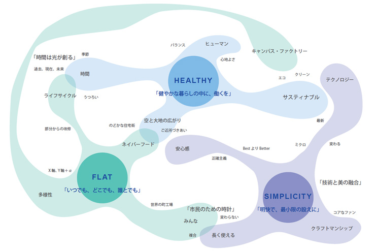 キーワードの抽出「SIMPLE」「HEALTHY」「FLAT」