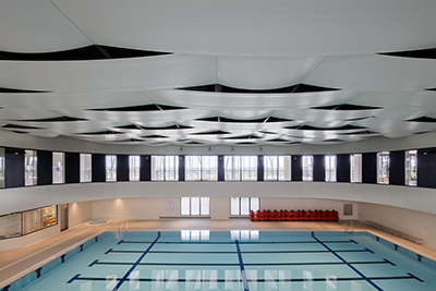 スポーツ施設と文化施設の共存 ー スポーツベット 着いたー、プール、音楽ホール ー