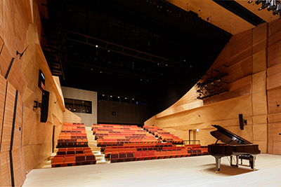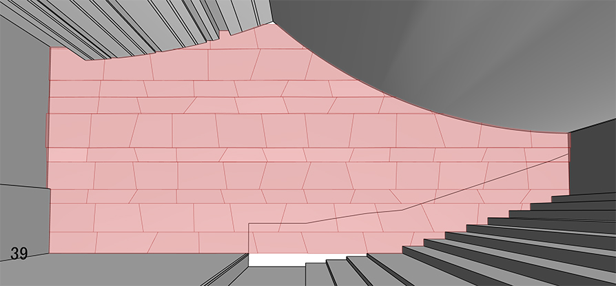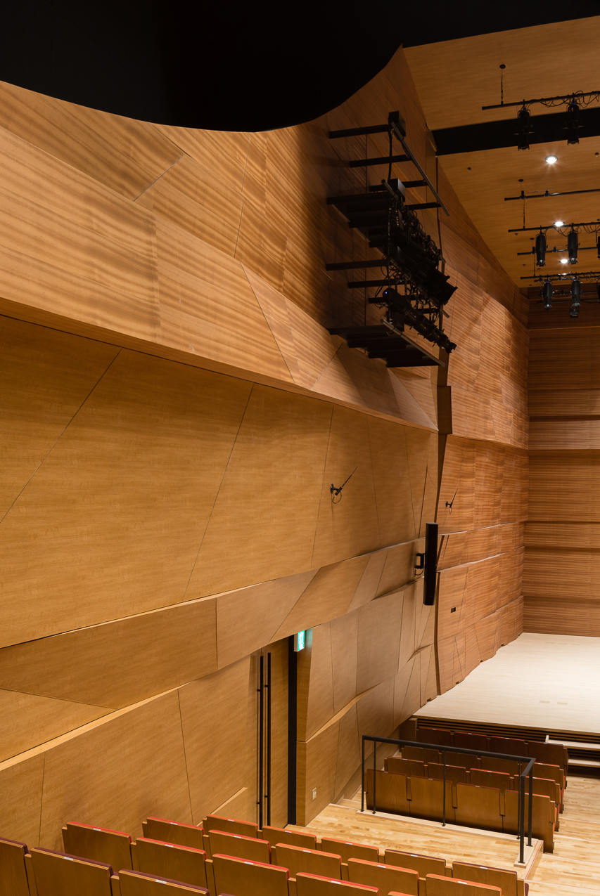 音楽ホール壁面についても音環境が良くなるような凹凸面をつくるべくデジタルデザインを活用している。 音響エンジニアと3Dモデルを共有し音響シミュレーションを繰り返し行いながら、形状を修正していった。