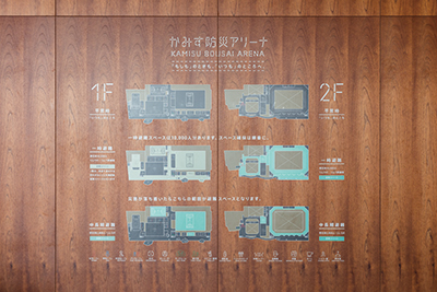 館内案内板:平常時だけでなく災害時の避難スペースも示されている