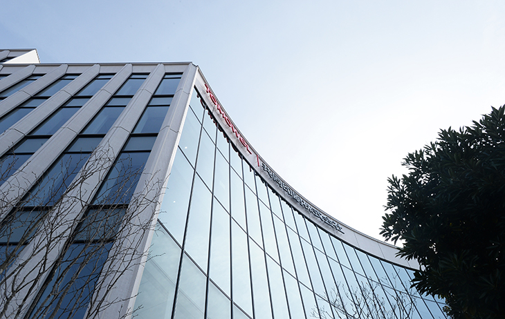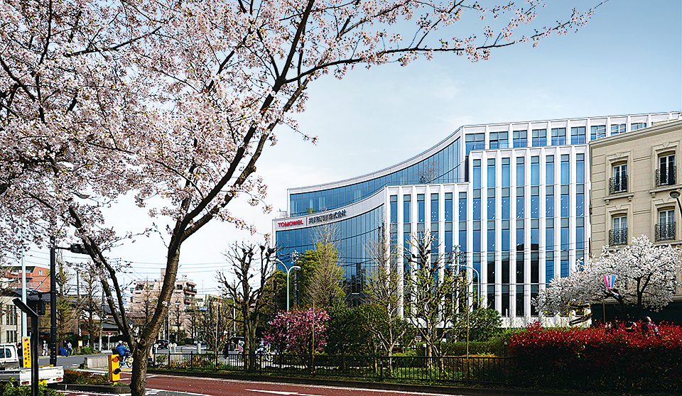 新本社の設計においては、少なくともこれまでの80年と同等の時間を利用いただく建築を目指す覚悟で臨んだ。あえて高層化を避け、既存緑地を残すように描いた外壁面のカーブと、水平に広がる列柱の連続により、外観の存在感を高め、将来の人員増を見据えた広々としたオフィスと免震構造によるロングライフな骨格と空間構成を追求した。中央を吹抜空間が貫き、研究開発エリアや食堂も備えたダイナミックな階構成の建築である。