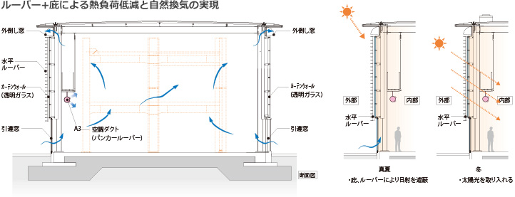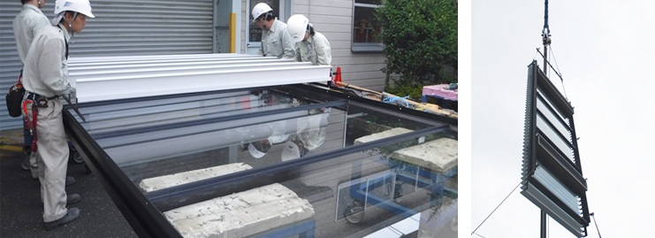 西面以外の3面をユニットCWとし、柱にワンタッチで取り付け可能。支持材を回転させ等圧空間を構成する。