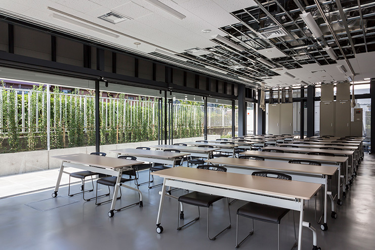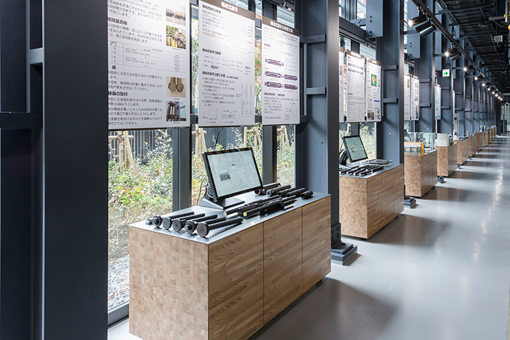1、2階吹き抜けのスポーツベット 評判室には、現物を前に「見て、触って、やってみる」を基本に「あるべき姿」と「自分でものをつくるマインド」を修得させることを目的に現寸モックアップ教材を用意した。