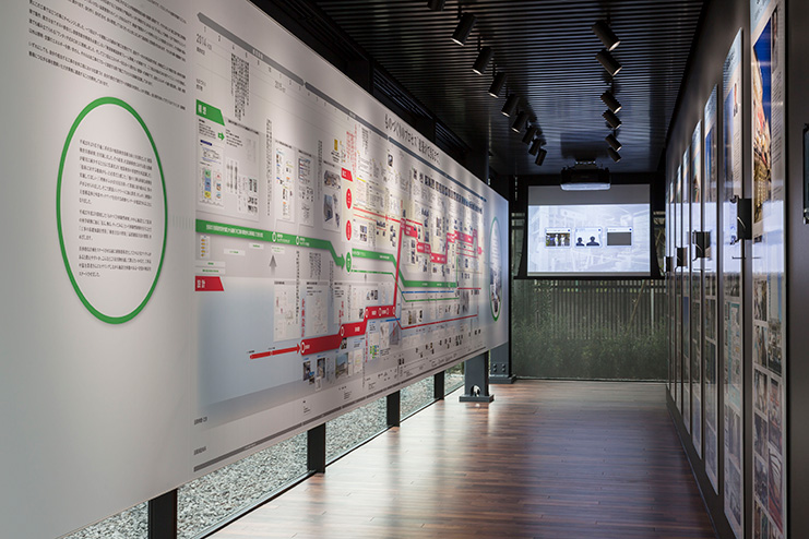 「PCaモックアップ」には構法の異なる各種PCa部材を配置し、併せて当社が保有する各種ハイブリッド構法を配置し構法の特色、違い、管理方法を理解してもらう。