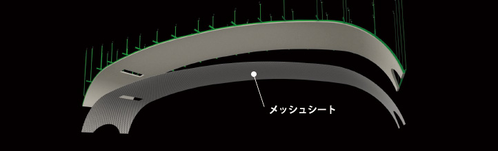 下地処理した天井面に補強用メッシュシートを貼り付け、天井を一体化。