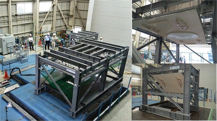 天井の一部を正確に再現した試験体に大規模地震を想定した振動を加え、設計通りの性能を保有していることを確認。