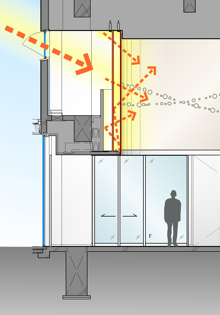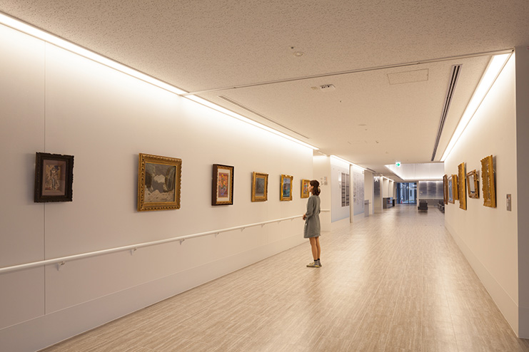 導光板照明に照らされる院内ギャラリーDesign Keyword-4:院長の目指した「力強い橋のある病院」