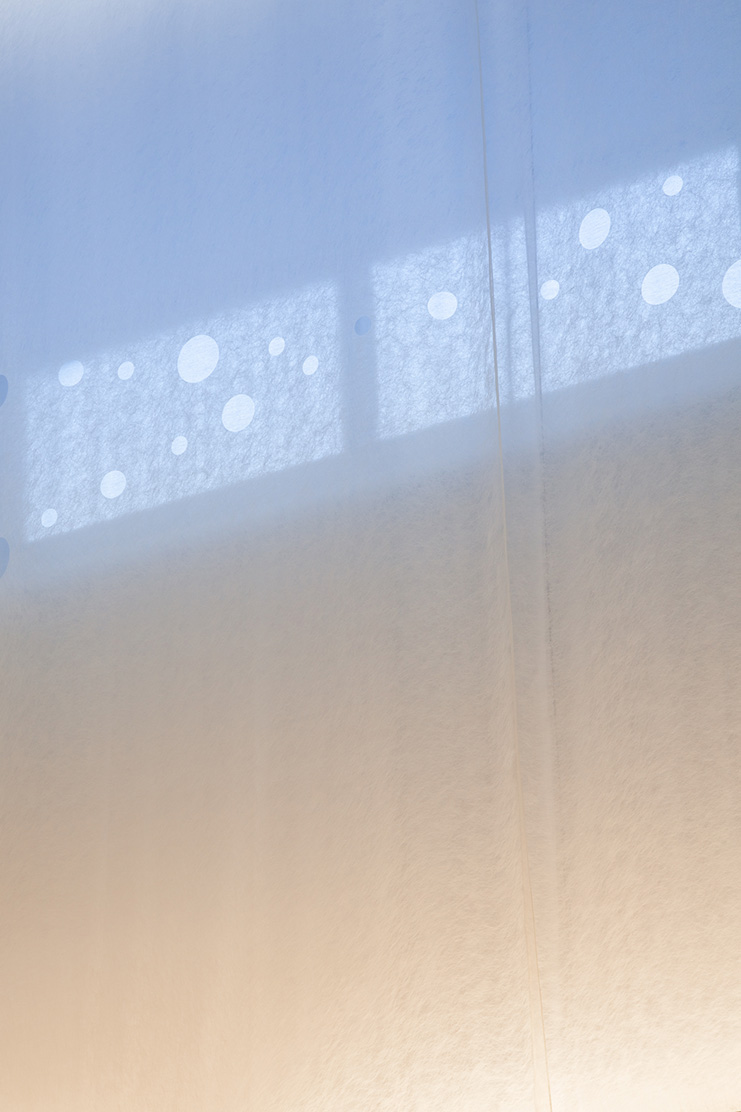 生活の源であるきれいな水を利用した和紙の産地でもあったこの地域にちなみ「和紙」「水」「光」をイメージした空間を計画した。その象徴としてのエントランスホールは曲線形状の吹抜にて来院者を柔らかく迎え、やさしい光あふれる空間にて人々の新しい日常の場とした。石の受付カインターが石鎚山の力強さを、受付背面の和紙は水の想起を意図した。