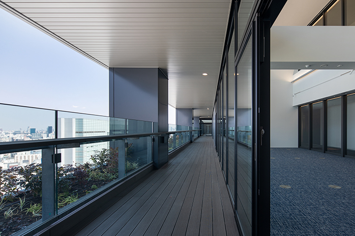 専有部からアクセスするオフィス最上階のプライベートテラス