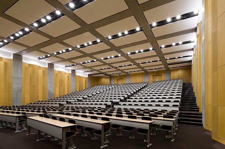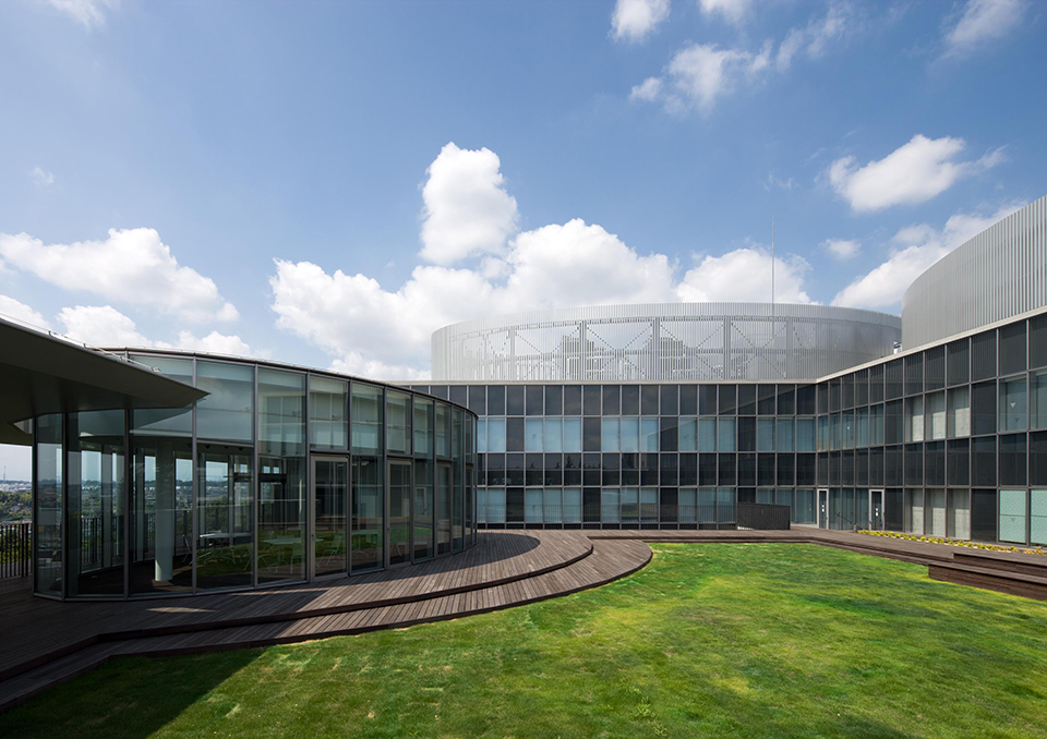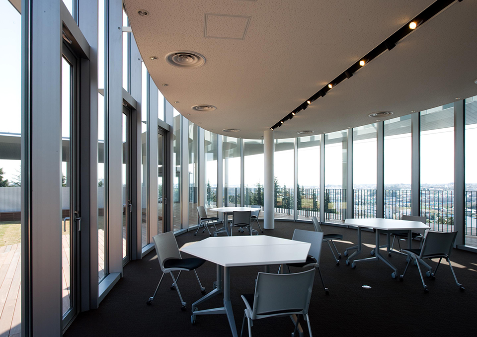 スポーツ系新学部の開設に伴い、スポーツベット ブックメーカー 口コミキャンパスの要の位置に新設した校舎である。学際的な交流と周辺環境との共生をはかった開かれたスポーツベット ブックメーカー 口コミを象徴する施設とした。 キャンパスを貫く十字動線の結節点に、学びと交流の機能を集約した2つのL型の建物を組合せ、学際(クリエイティブスタジオ)、教育(大講義室)、憩い(屋上庭園)の3つのスポーツベット ブックメーカー 口コミコアを中央に内包させた。省エネ手法のダブルスキンを応用した縁側回廊を巡らし、自然と眺望に恵まれた心地良い学生たちの居場所を設け、外皮のガラスファサードは学生たちのアクティビティを視覚化し学内外へ発信する。また、既存校舎を併せた建て替えの結果、建物内部につながる緑豊かなオープンスペースを生み出し、学園生活を潤す環境づくりを行った。