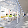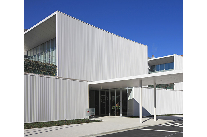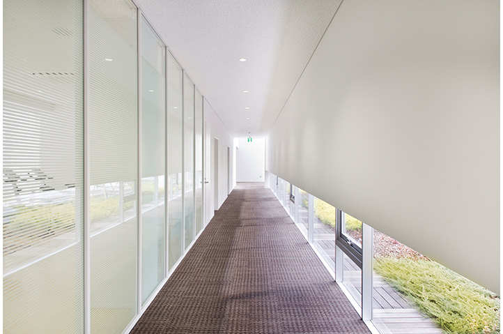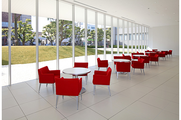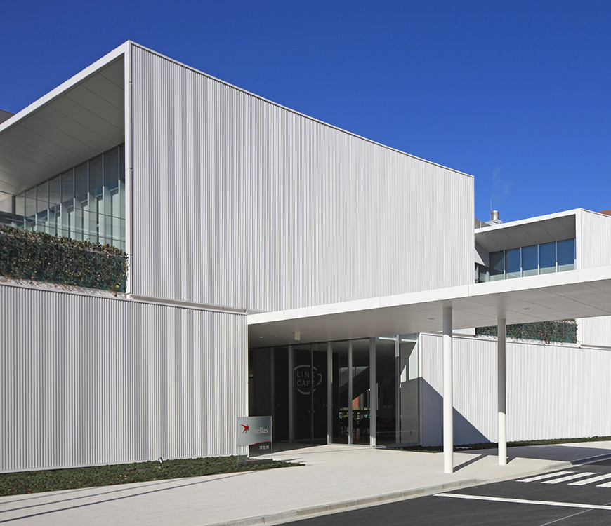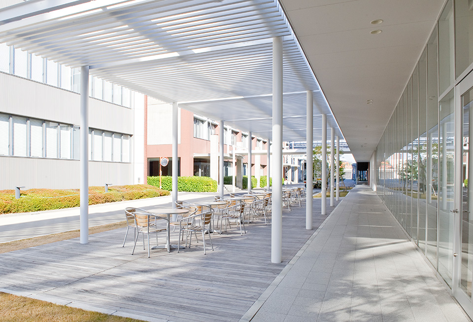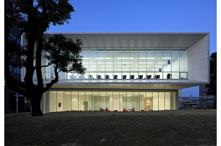 研究者間交流の活性化を主題に、研究者を「動かし」「集める」配置・動線計画を行った。既存研究棟群の中央に位置しているため、建物内にパサージュ(貫通通路)を通し、パサージュと建物の交点に食堂・カフェを配置することでコミュニケーションの誘発を図った。2階に配した屋上庭園が建物のボリュームを適度に分節し、白い箱を積み重ねたような外観は、軽快なリズムと規律を生んでいる。