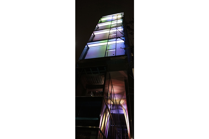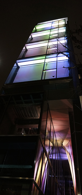 total over スポーツベット駅前に位置する、オフィス・商業の複合用途建築。オーナーとテナントとが共存しながら、街を行き交う人々と交感するような建築の姿を目指した。奥行きを持ったファサードと人々を引き込むアプローチの空間、そしてそこに添えられた四季を彩る光の演出。スケルトン建築に設えたこれらの仕掛けが、多様なテナントと共存しながら、街並みに固有のメッセージを発信する。