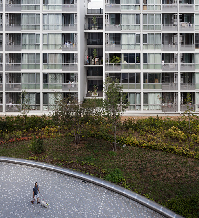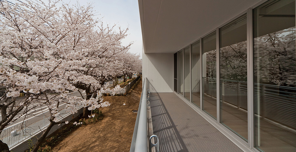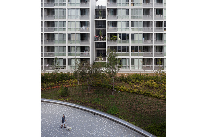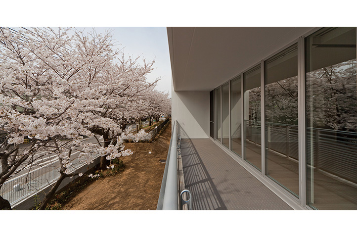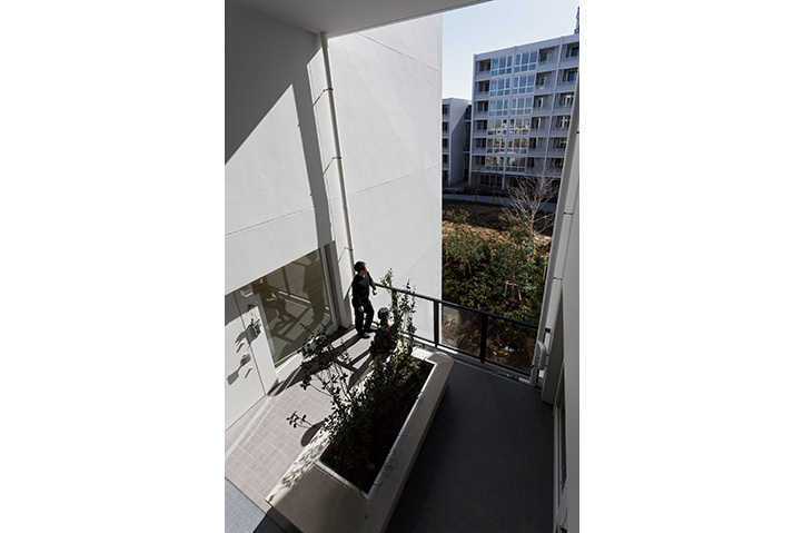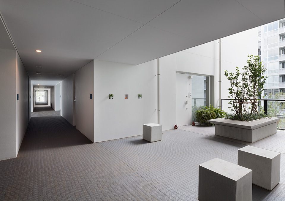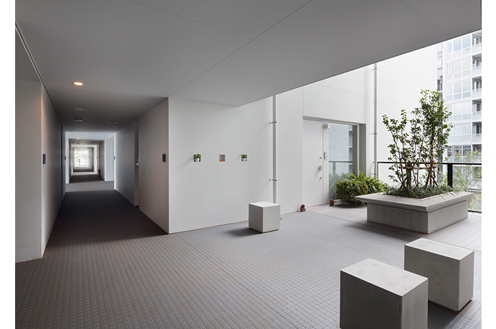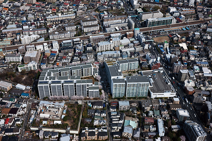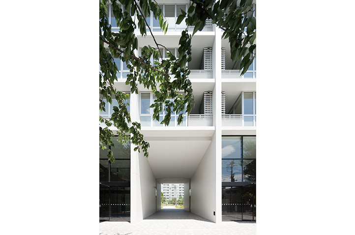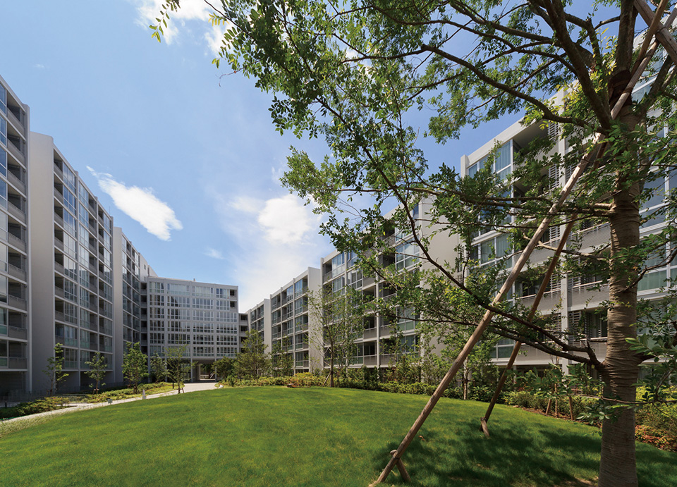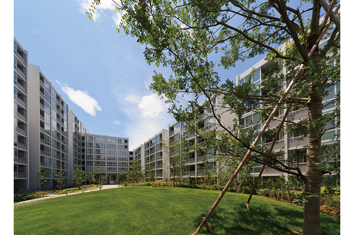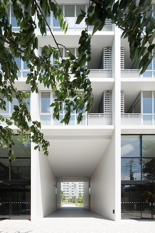 当社社宅跡地の自社開発事業。環状8号線に面した第一期は商業施設を含む270戸、今回は371戸の賃貸マンションを開発。敷地内に多くの開放スペースを設け、昔からの地域との地縁を将来につなげた。住宅棟には「ハーフコモン」と名付けた専用部と共用部の中間的な領域となる「すき間」を設け、ライフスタイルの変化から発想した多様なプランバリエーションを提案している。