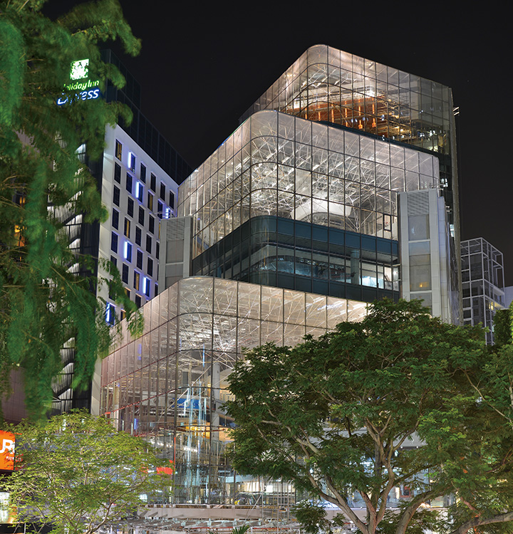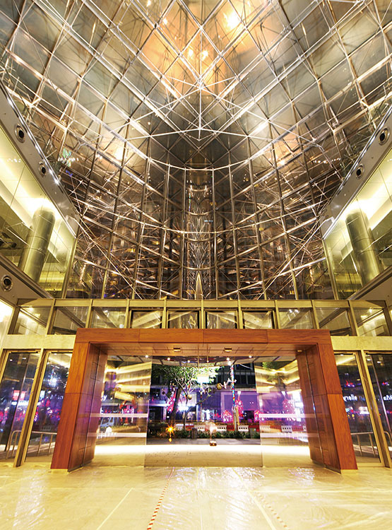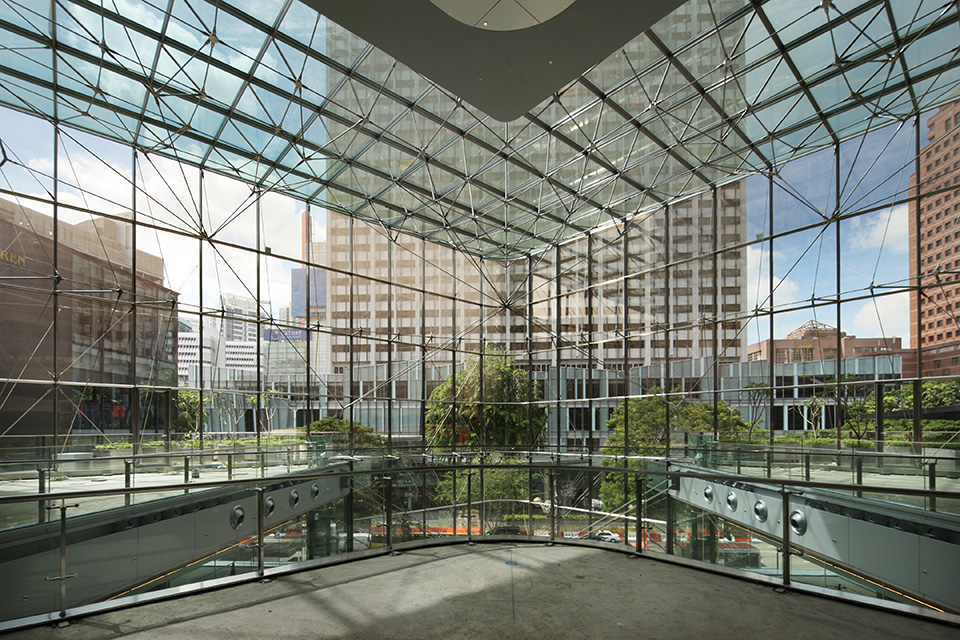 シンガポール最大の繁華街、オーチャード通りに建つ商業施設。アトリウムは「構造体のない」ガラスで包まれた「光のオブジェ」をイメージしたスポーツベット サポート。耐火被覆のないステンレス無垢部材を使用し、立体接合のための高い部材精度が実現を左右する技術的課題となったが、火災時の温度分布シミュレーションによる耐力変化の検証や3Dスキャナー利用による3次元継手が解決策へと導いた。