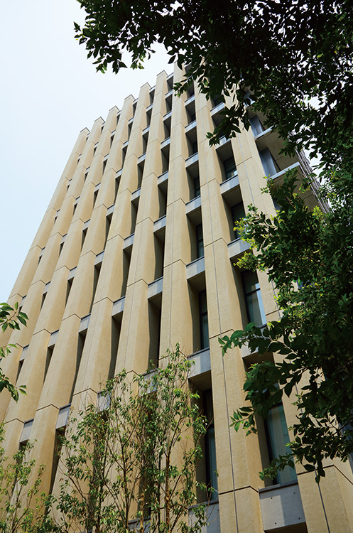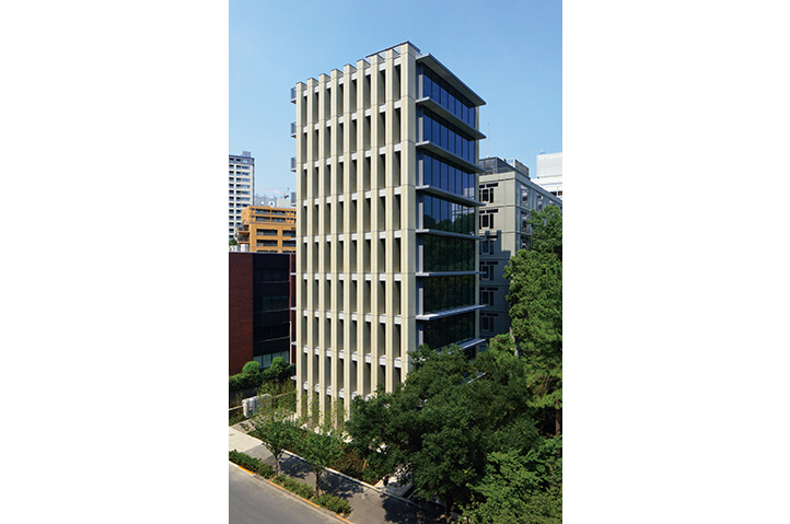 紀尾井町にある緑あふれる清水谷公園に隣接して建つスモールスポーツ ベット ログインである。 公園の豊かな緑を借景として取り込み、都心部にありながらも、外部と一体となった広がりのあるスポーツ ベット ログイン空間を目指した。南側の清水谷公園に対して大きく開く構成とするために、北側にコアを配置し、構造フレームを東西に集約している。アウトフレームの構造計画は、整形無柱の開放的な執務空間を実現し、掘りの深い外観は隣地からの視線を制御している。PCFの柱型にはカラーコンクリートを採用し、サンドブラスト処理を施すことで、素材が持つ表情と自然な風合いを活かした重厚感ある外装デザインを目指した。この建物が時間の経過とともに、風景の一部になることを望んでいる。