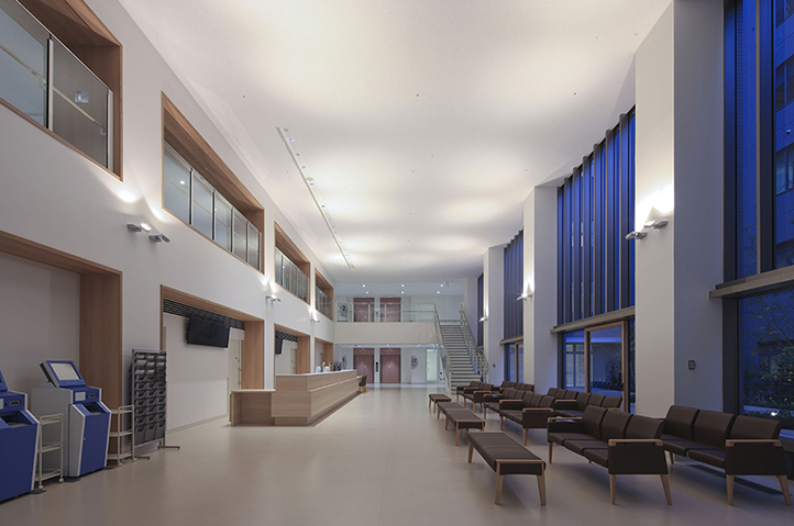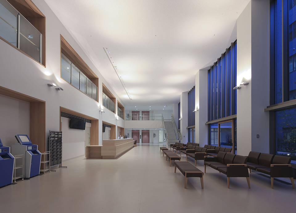 松山市民病院は地域の中核病院として市民に親しまれてきた。今回は急性期病院としての地位を継続させながら「コモンディジーズ(スポーツ ベット テニス的な病気)を主としたいつでもどこからでも立ち寄れる地域に根差した病院」を目指した整備である。 吹抜の待合ホールからは明るい中庭を眺めることができ、街中の喧騒から一歩離れた、静謐な市民の憩いの場を提供している。 正岡子規や坊ちゃん、松山城など松山ゆかりのモチーフをサインに組み込み、道後温泉本館の竪格子のイメージを待合のカーテンウォールに用いたりして、 住民にとってほっと落ち着ける親しみのある松山の文化・風土色豊かなデザインを随所に設けた。 緯度が低く比較的気温の高い松山市の気候に対し、建物の南面には庇を設け、夏の強い日射を遮って省エネルギーに配慮し、冬は日差しの暖かさを取り込むことで快適さを実現した窓廻りとした。外観はその窓の機能を素直に表したデザインとした。