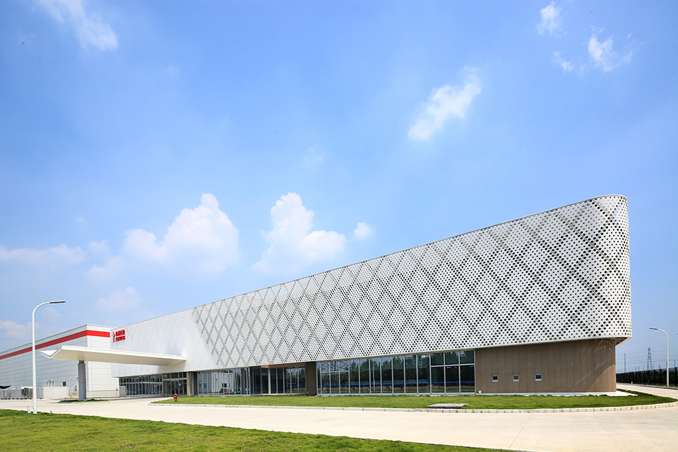 中国における3番目の拠点として計画された工場である。 中国でも愛されている商品イメージをモチーフに、子供から大人まで皆の記憶に残る「わかりやすく」、「ユニークな」 ファサードデザインを目指した。外壁をやさしく覆うパンチングパネルと足元のガラスに映りこむ自然光や周囲の風景が、季節折々、時折々の表情を作りだしている。 パンチングパネル越しに注ぎこむやさしい光と影が織り成す様々な表情が、人々に心地よさを与える空間を生み出している。 外装はいつまでも白い清潔感を保つために、光触媒塗装を施している。お客様の商品と共に、地域の人々にいつまでも愛される建築であることを願っている。