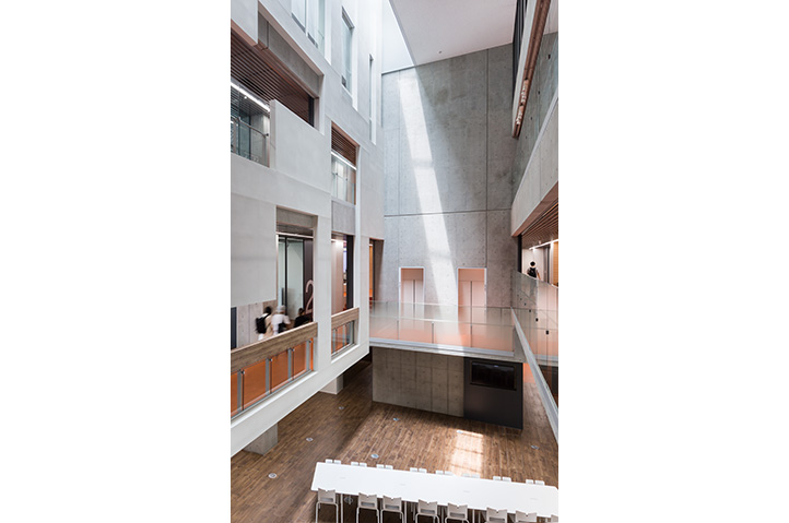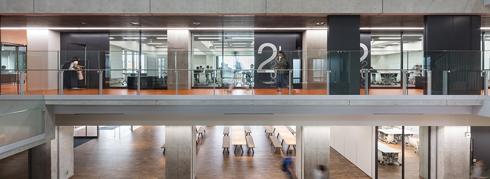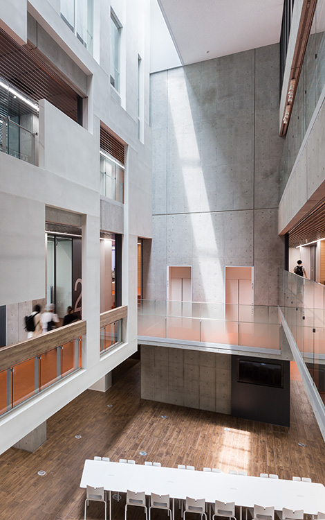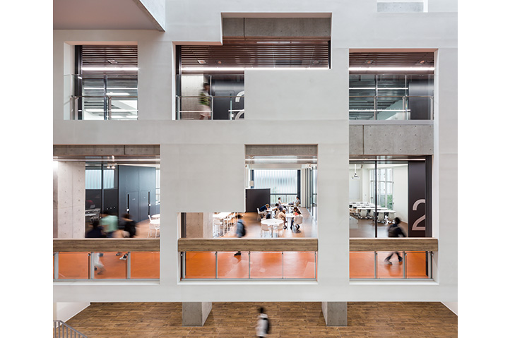 実学・教養・少人数教育に基づくアクティブラーニング・ラーニングコモンズという新たな学習スタイルを取り入れた新校舎の計画。建物内各所はコネクティングボイドに面し、特色のある家具を設置したラウンジを設けることで学習時間以外にもゆったりと滞留できる空間を確保している。 低層の住宅地に隣接するため4階建の校舎にコスポーツベット 稼ぐクトに配置し、大きさを極力感じさせない周辺環境に調和した外観デザインとしている。また、外周部に耐震壁を設け開口部を極力減らすことで周辺住宅のプライバシーにも配慮している。一方で吹抜やトップライトからの自然採光・自然換気による快適な学習空間を確保している。