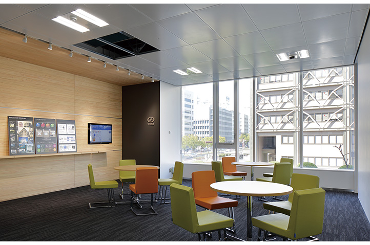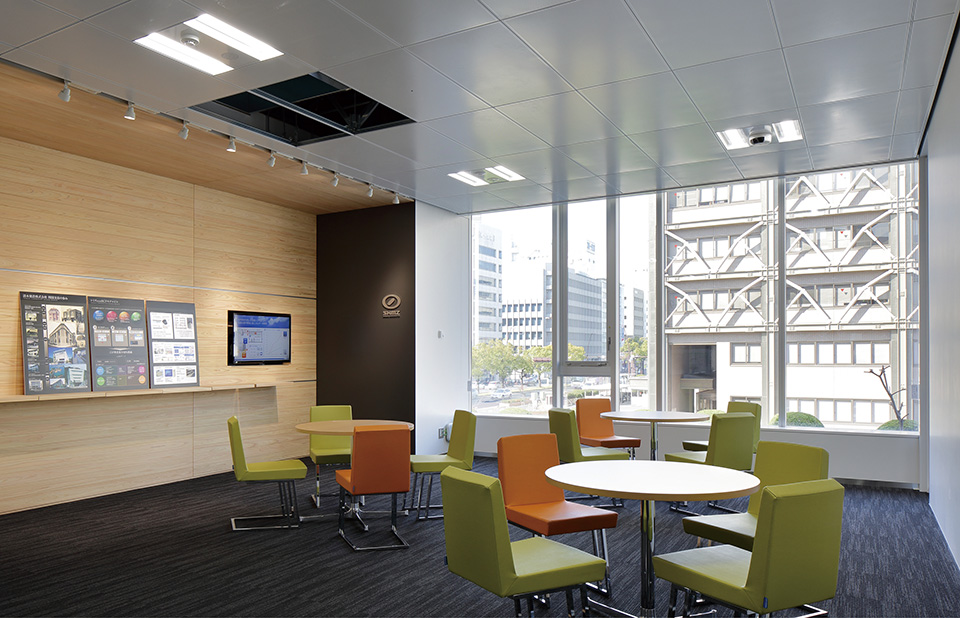 スポーツベットの技術力をアピールするショールームであり、四国地方の活動拠点となる支店の建替計画である。 瀬戸内の穏やかな気候を最大限に利用する汎用性の高い省エネルギー技術と、当社開発技術である放射空調システム(Sラジ-システム®ライト:特許出願中)を組合わせることにより、年間1次エネルギーを60%以上削減する計画である。中規模ビルにおける『ZEB』を見据えた省エネルギービルを目指している。 また災害時には復旧拠点としても機能するよう、大規模地震に耐えうる柱頭免震構造を採用。停電・水害対策、備蓄倉庫等のBCP対策にも注力し、シミズが提唱する省エネと事業継続を両立する『ecoBCP』モデルビルを実現した。