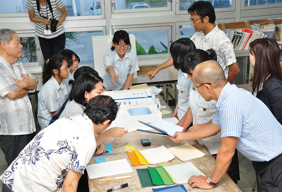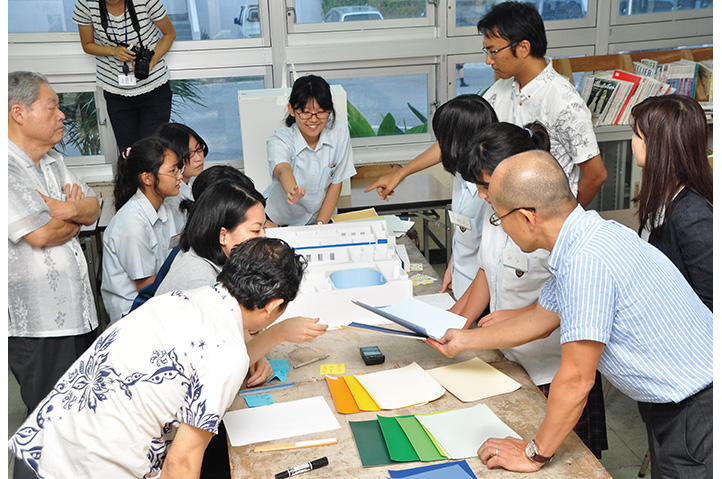 沖縄屈指の進学校であるスポーツベット twitterの校舎建替計画である。成長著しく、自我確立の時期の学校生活において「人との交わり」「自然を感じるのびやかさ」が大切だと考えた。「授業への集中は、休み時間の気分転換があるから」を合言葉に、校舎全体に様々な自然を感じられる居場所を点在させた。教室にはバルコニー、廊下にはフジツボ型のアルコーブを設け授業間のリフレッシュ空間とし、普通教室棟と特別教室棟の間にも、外部を感じられる交流の場を随所に配置した。また、「生徒も設計者」として新校舎の設計を行うワークショップを行った。こうした活動を通じて先生と生徒は時間を共有し、お互いの理解を深めると同時に学校への愛着を抱くきっかけともなっている。