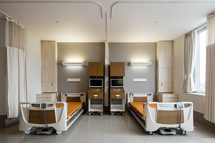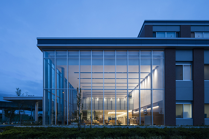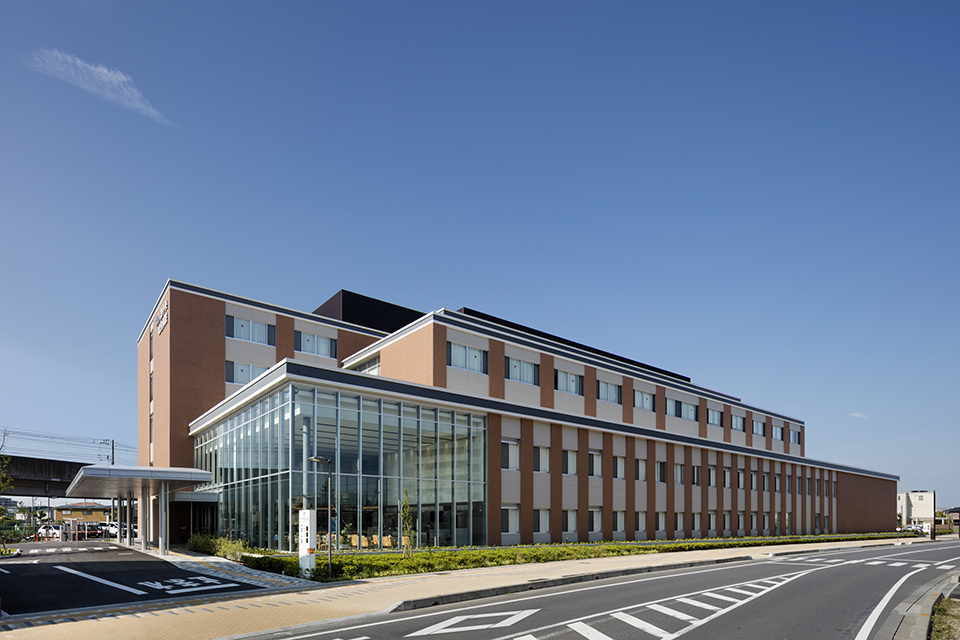 八潮市の地域スポーツ ベット ボーナスを担う250床の総合病院の新築移転計画である。病院が理念に掲げる『地域に信頼される病院』を実現するため、地域の方々にとって親しみやすく『安心・安全な病院』を目指した。移転新築にあたり、外来・救急・人工透析・手術部の充実、付属健診センターの一体化による連携強化、動線分離、療養環境充実や機能性向上を目指した。特に病室のベッド廻りの環境向上のため、外壁部分に扁平柱を採用し、柱型がでないコラムレス病室を実現した。窓側に柱型がないため4床室全てのベッド両側に等しい治療スペースが確保でき、ベッド廻りの機能性と快適性を向上させている。また、床面積の最大化のためバリアフリー法による容積緩和認定や天空率を採用し、敷地に対し最大限の床面積を確保し機能の拡充をはかった。
