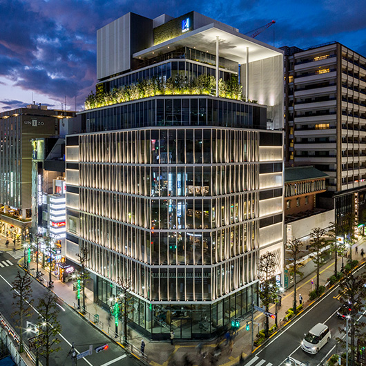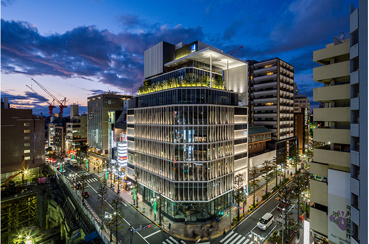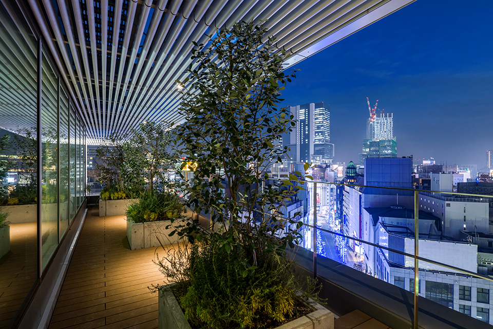 ブック メーカー スポーツ ベットパルコPart2跡地に建つ商業施設。低層部にはアパレルとホテルが融合した新業態が、上層部にはブライダルが入居する。 目抜き通りのアイストップとなる立地。ファサードは、多面体のアルミキャスト(鋳物)で構成し、宇田川町や公園通りなど、水面や木漏れ日を想起させる地名から、「光のきらめき」を表現している。エッジの効いた大庇とのシナジーにより、建物をシンボリックに表現し、テナントの賑わいを街に表出させながら、公園通りの新たなランドマークとなることを目指した。 また商業施設として効率性の高い平面を追求するとともに、「BCP」「長寿命化」「環境」という3つのキーワードを融合し計画した。オイルダンパーによる付加制震構造、災害時を想定したインフラ、日射を軽減し将来更新可能な外装材などを実装している。