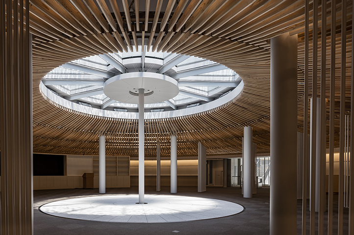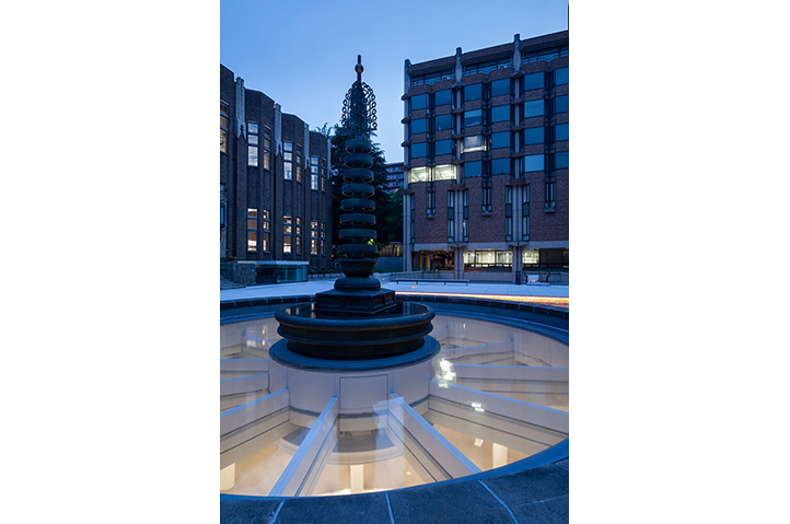 赤門のあるスポーツベット 期待値大学本郷キャンパス。1928年創建の内田祥三設計の総合図書館本館正面広場の『知のアーカイブ』を象徴する広場の45m×30mの白色花崗岩の『石板』の地下に300万冊収蔵の自動化書庫を持つ別館は埋設されている。地下46mに達する躯体の施工には、土木施工技術であるニューマチックケーソン工法を採用している。設計に当ってはスポーツベット 期待値大学の監修を受けて進めた。地下1階の創造的学習の場『ライブラリープラザ』は、広場中央の噴水と一体化したトップライトからゆらぎのある自然光を導くとともに、国産杉の木格子の天蓋、ドラフトのない輻射冷暖房と全面床吹出しの併用空調と二重有孔板により吸音性を高めることで、静謐で求心性のある空間を目指した。