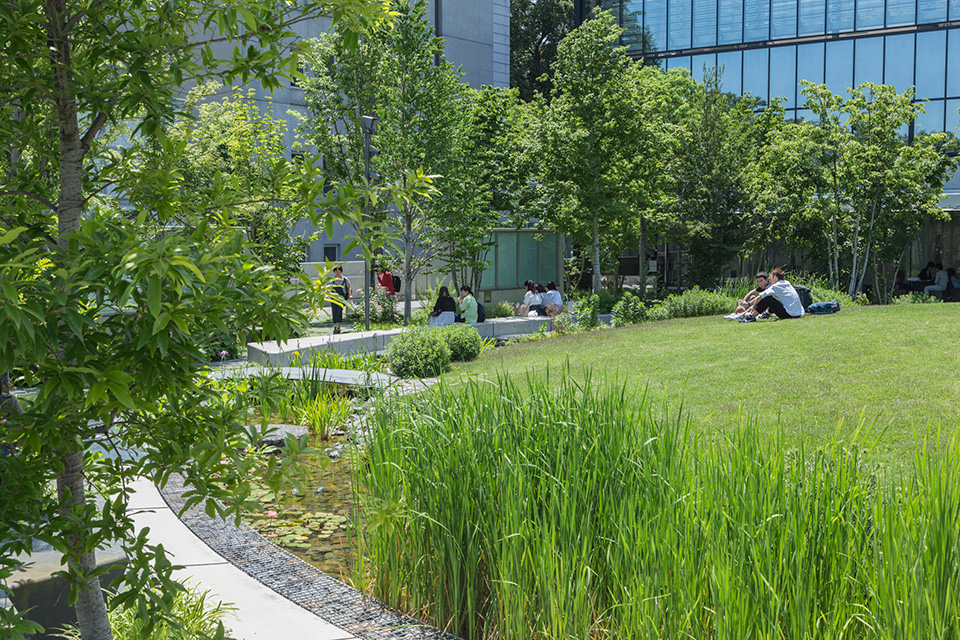 スポーツベット口コミアリーナは、多機能型スポーツアリーナを中心にラーニングコモンズ等で構成される複合施設である。 メインアリーナなどの建物ボリュームの大半を地下に埋設することで、地上部は起伏のあるキャンパスの地形に呼応する緩やかな傾斜を持った「戸山の丘」となっている。 基本計画・基本設計にて考えられたスポーツベット口コミ大学の次世代のシンボルにふさわしい『ランドスケープアーキテクチャー』をいかに実現するかが私たちの課題であった。 「戸山の丘」は、竣工直後から自然な風景とするために、雑木林のように多種多様な植物を混植した。エネルギー面では、地中熱を利用した空調システムの構築や空間特性に応じた換気システムの導入などを行い、ゼロエネルギーアリーナを実現した。また建物全体でもZEB Ready(56%削減)の認証を受けている。