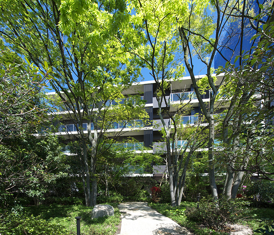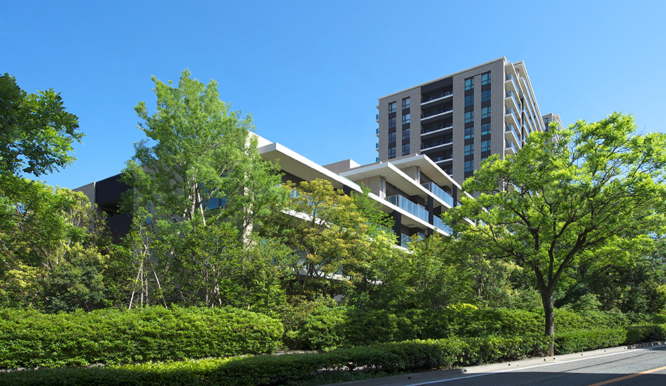 福岡市有数の高級住宅地に位置する3haの敷地に約10年に及ぶまちづくりを行うプロジェクト。住棟3棟・駐車場棟・施設棟の5棟で構成される集合住宅群である。5年を経て全体計画の約半分が完成した。 「邸宅集合」という事業者のコンセプトをキーワードとして、街区全体を森と考え、森に佇む邸宅感を享受できるような住環境づくりを目指した。建物を道路から後退させ高層化し、南北軸に沿った中廊下式の住棟配置とすることで、周辺へのゆとりと開放感を演出。沿道景観に配慮した緑豊かな住まいを実現した。「森・石・水」を住棟コンセプトとした各棟のエントスポーツベット アービトラージ okスもまた、自然を取り込んだデザインとしている。樹木越しに見える外観は、建物を縦に分節した。リズミカルで繊細な印象をつくりだしている。
