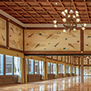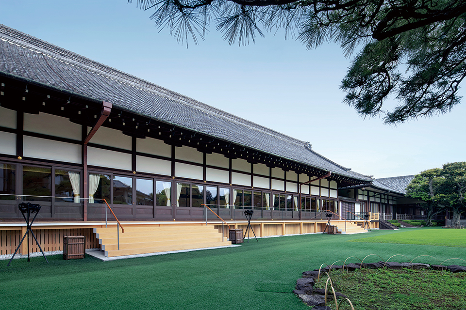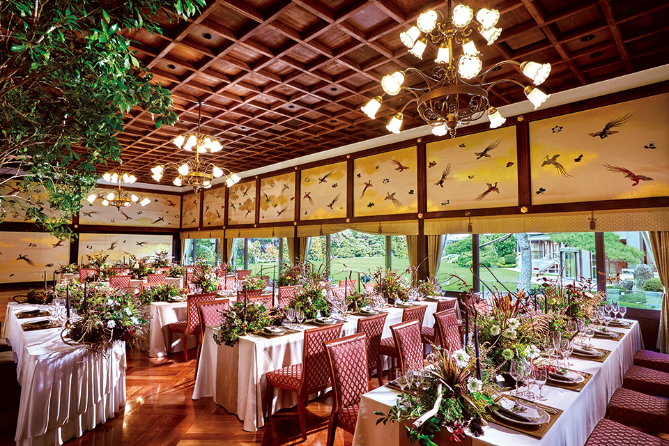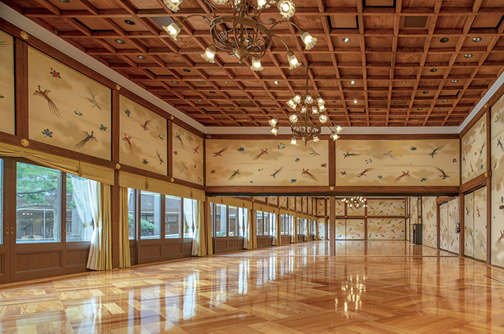 スポーツベット 入金方法記念館本館は、スポーツベット 入金方法14(1881)年に赤坂仮皇居御会食所として建てられ、二度の移築を経て「憲法記念館」となり、現在のスポーツベット 入金方法記念館へと引きつがれている。主要部分の当初形状や軸組材は維持され、歴史的価値が保持されているため、史料に基づく改修とし、「スポーツベット 入金方法記念館のオリジナリティ重視」を念頭に置いて計画を進めた。 テラスの手摺は、芝生上で舞の披露や新郎新婦の記念撮影が行われるため、存在を感じさせないように強化ガラス製とした。縁板は既存の床板を削り直して再利用し、移築当初の縁の遺構は床下に維持している。 内部天井は、後補のライン照明をグレアレスの埋込ダウンライトに変更して存在感を消し、空調吹出口は木製として建築化した。これにより中央のシャンデリアが際立つシンプルな格天井として再現をした。カーテンは「御簾」をモチーフに和の雰囲気を目指し、紋様には品格のある有職文様の「小葵」を散りばめた。