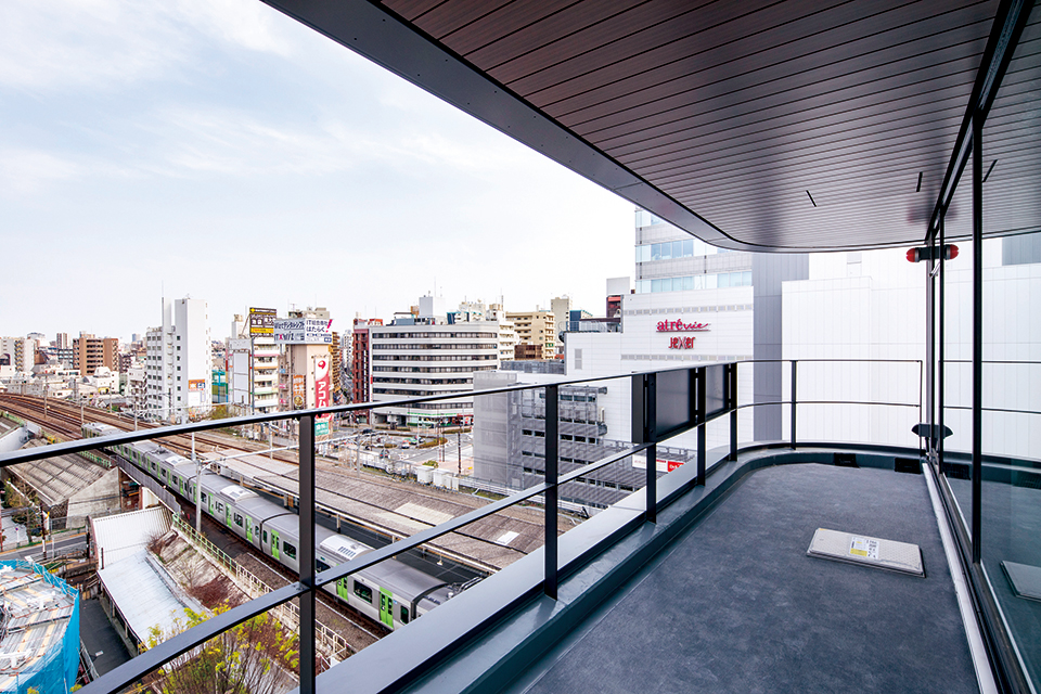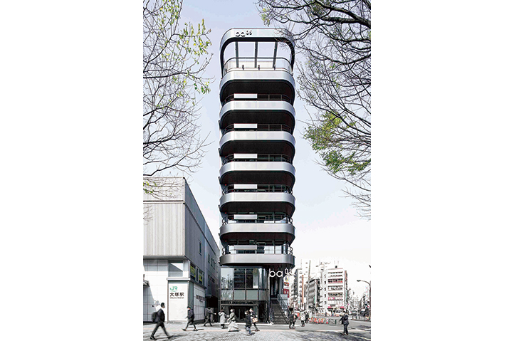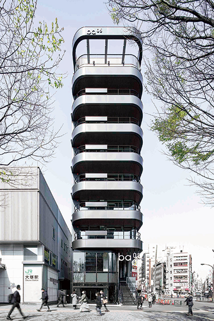 本計画はJR山手線大塚駅駅前広場に立地する複合テナントビルである。隣接する池袋や巣鴨と比較して個性に見劣りする大塚のイメージを一新する、街を印象付ける「賑わいを創出するファサード」と優れた収益性が求められた。そこで、大塚の「O」、人と街をつなぐ「輪」、施主のロゴである「sumou スポーツベット」を組み合わせた「リング」をコンセプトとし、駅前広場に積層して強く浮かび上がらせた。外観のリングの浮遊感の強調と開放的な内部空間を実現するために、φ219の鋼管柱とW2400の大開口を採用し、ビジョン部の透明性を極限まで高めている。細柱は外壁廻りのデッドスペースを削減し、フロアの有効率も高めている。上層に大きくはね出したピロティにより駅前広場と建物を繋ぎ合わせた。ルーフトップテラス等、リングの各所に外部空間を取り込むことで建物に付加価値を与え、立体的な「場- sumou スポーツベット -」を創造した。