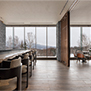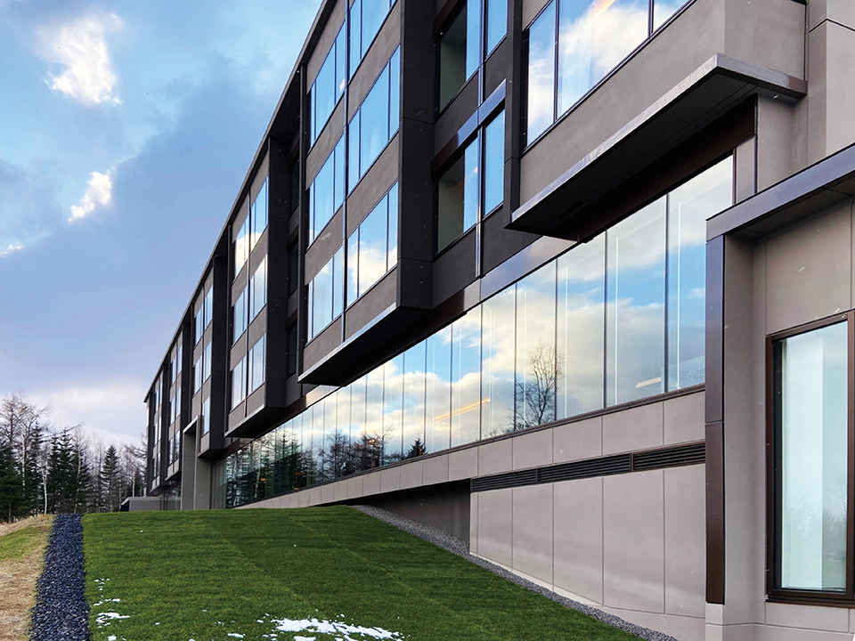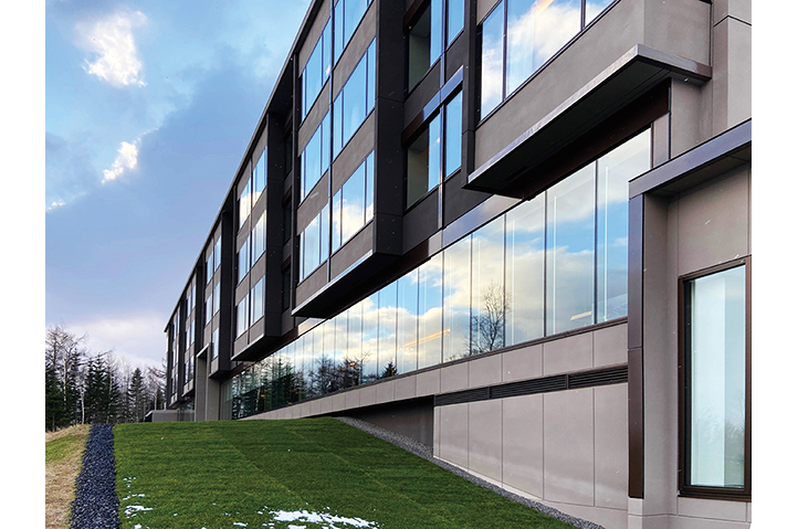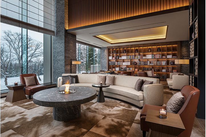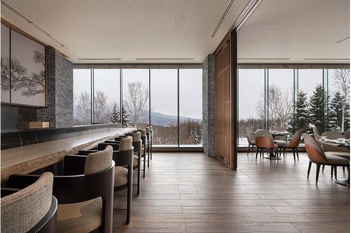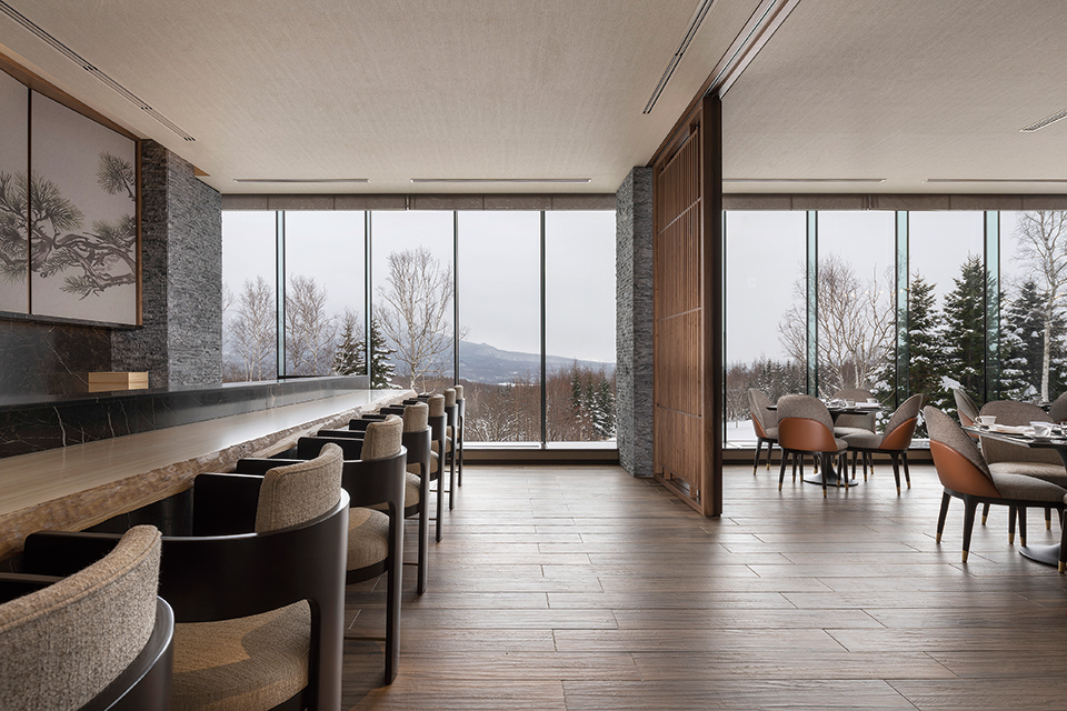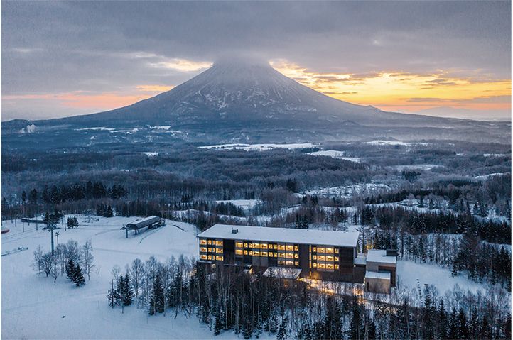 最高級グレードホテルとしてのグローバルなサービスと、この土地ならではの雄大な自然を享受する滞在体験の提供が求められた。敷地はスポーツベット喜ぶエリアの眺望の結節点であり、アイヌの精神的なシンボルでもある羊蹄山を臨むスキー場の一角にある。設計時に既存樹木をすべて実測し、眺望や周囲の自然環境との関係を配置計画の段階から調整することで、この土地のもつ雄大さをゲストの滞在体験に結ぶことを意図した。建設に際しては、計画全体の排出土がゼロとなるように建物レベル・構成を最適化することで自然環境への影響に配慮した。外装は襞の構成と金物により陰影を表現。夕暮れ時は白銀の中に帰宿するスキー客のための灯となる。ミニマムな建物構成とディテールが、3mを超える積雪に対する合理性を得るとともに、周囲の雄大な自然のうつろいを感じられる、日常を離れたくつろぎを提供するホテルとなることを目指した。