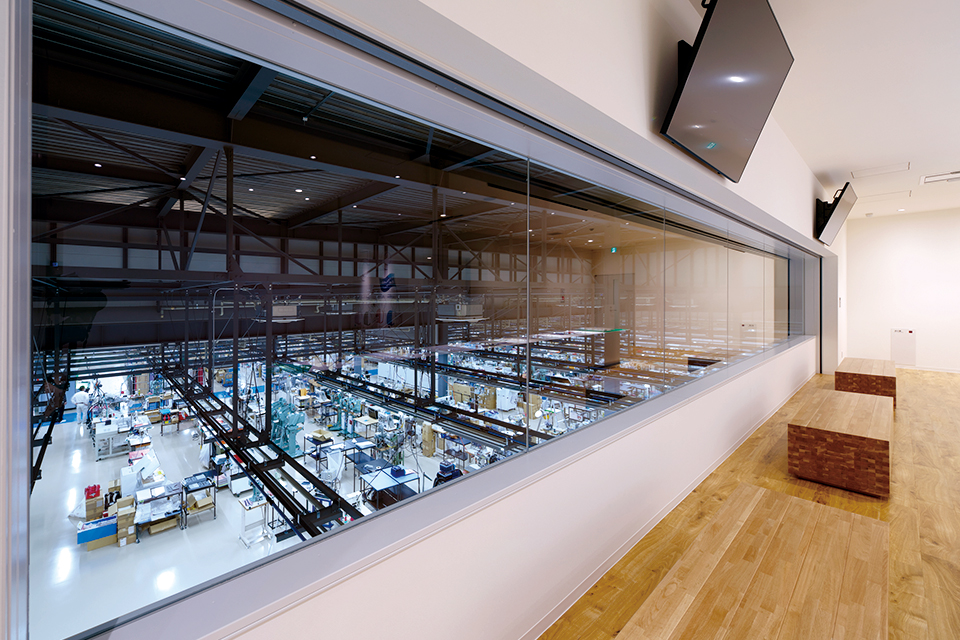 創業100年を迎え、次の100年に向けて「愛情のものづくり」を体現する老舗ランドセル製造販売会社の新本社工場計画である。既存本社および既存工場3拠点を一ヵ所に集約し、生産の合理化・コミュニケーションの向上を目指した。お客さまや地域住民、社員などウィリアムヒル スポーツベットに関わるすべての人々を笑顔にする工場にしたいという想いを込めてSEIBAN SMILE FACTORYと名付けられたこの工場では、大きなウェルカムボードのような外観ファサード、子供が寄り道できるアプローチ空間、ランドセルの歴史や製造現場を見学できるミュージアムや通学のプレ体験をしながらランドセル選びができるファクトリーショップなど、訪れる子供たちはもちろん大人も楽しむことができる工夫を散りばめた。また、コーポレートロゴの「天使のはね」を建築の要素に取り入れ、ウィリアムヒル スポーツベットらしさを探しながら過ごせる楽しい空間に仕上げている。